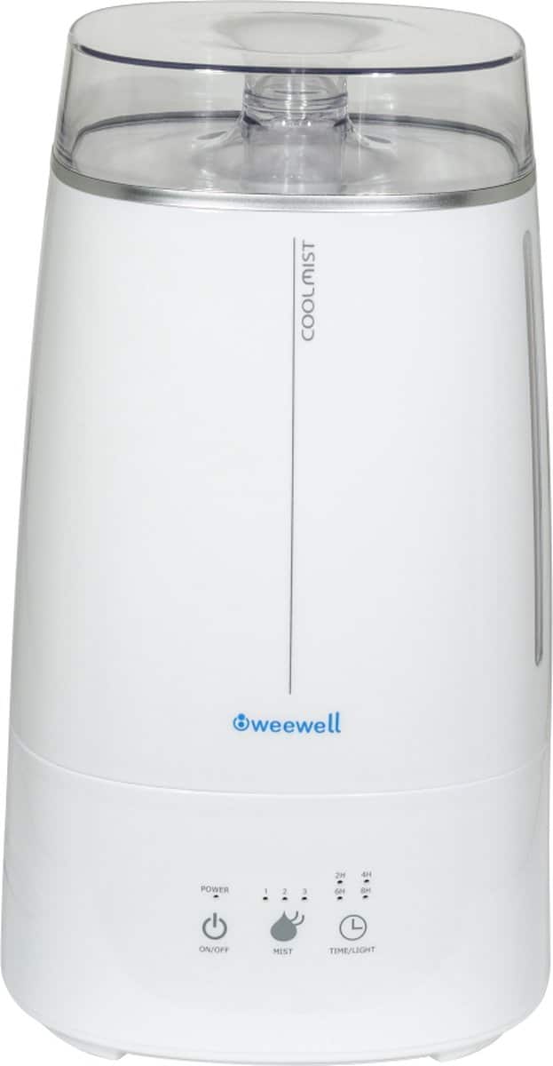 De Weewell Ultrasonik Luchtbevochtiger is een manuele luchtbevochtiger met een minimalistisch, stijlvol en modern design die je gemakkelijk kan bedienen met het touch bedieningspaneel. Hiermee kun je de timer instellen (2, 4, 6 of 8 uur) en het multicolor LED licht aan- of uitzetten. Daarnaast kun je hiermee drie verschillende sterktes instellen.Je vult de luchtbevochtiger eenvoudig aan de bovenkant.Dankzij de watertank van 3,5 liter kan de luchtbevochtiger lekker lang gebruikt worden voordat je hem weer bij moet vullen.