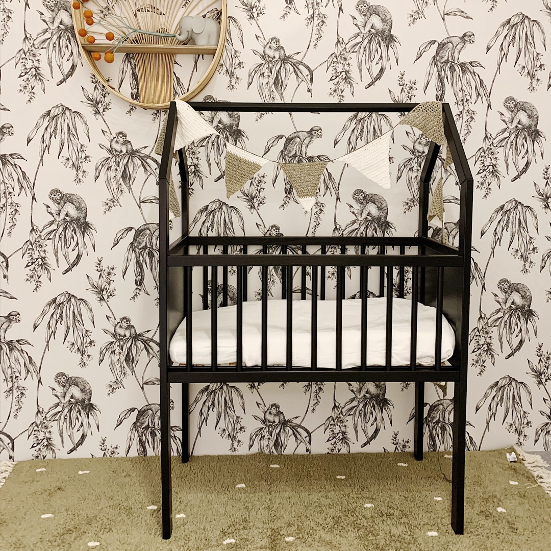 Eigenschappen Wieg / Co-sleeper Bedside House Black – 2-in-1 wieg en co-sleeper- Afmetingen (LxBxH): 80 x 45,5 x 80cm (excl dakje)- Maximale aansluithoogte tot ouderlijk matras: 55cm- Geschikt voor wiegmatrasjes van 40 x 80 cm Gebruik de wieg niet meer zodra je kindje zichzelf omhoog kan trekken, op de knieën gaat zitten of zelfstandig kan zitten. Lees voor gebruik de instructies die bij de wieg zitten, voordat je deze in gebruik neemt.