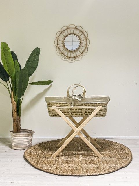 Specificaties: Wieg Mozes Funnababy Incl. Bekledingset Muslin Luxe Sand & Standaard