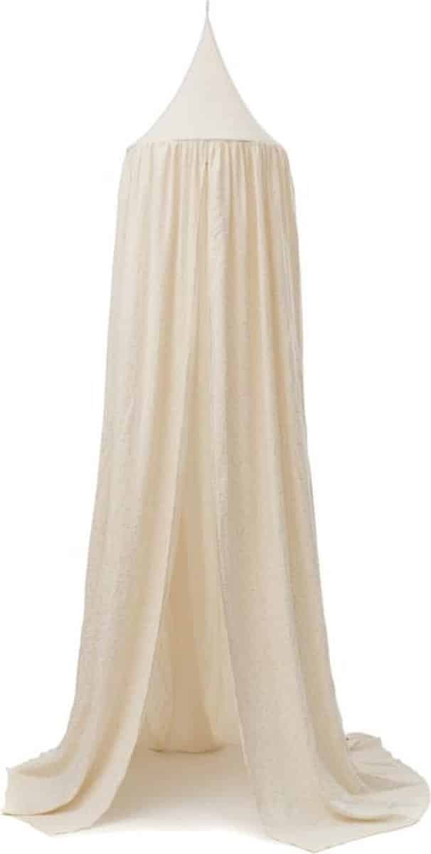 Deze nieuwe klamboe met golden dots is een prachtige eyecatcher in je baby- of kinderkamer. De stof is licht van gewicht, ademend en valt mooi soepel. De gouden stipjes geven de klamboe een magisch effect en is prachtig boven een bedje of om een mooi knus hoekje mee te creëren.