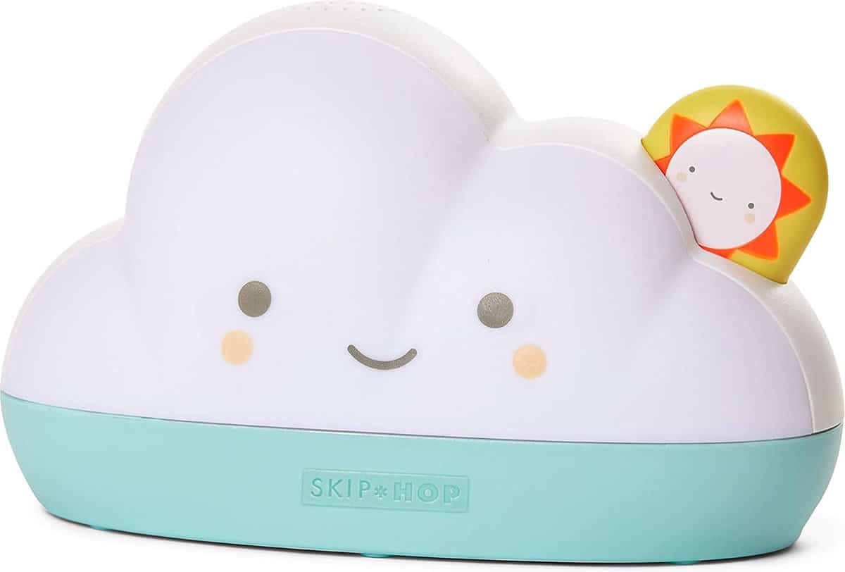 Als het tijd is om te gaan slapen, kleurt de wolk rood. Als het bijna tijd is om op te staan, wordt de wolk geel. En als het tijd is om op te staan, wordt de wolk groen, wat betekent dat het tijd is om uit bed te komen en de dag te beginnen.